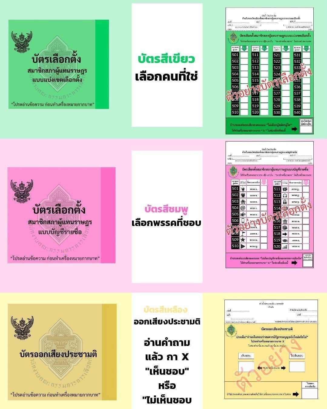 - 💛 บัตรสีเหลือง : ลงประชามติแก้รัฐธรรมนูญ ปี 2560 (❌ “เห็นด้วย” หรือ ❌ “ไม่เห็นด้วย”)