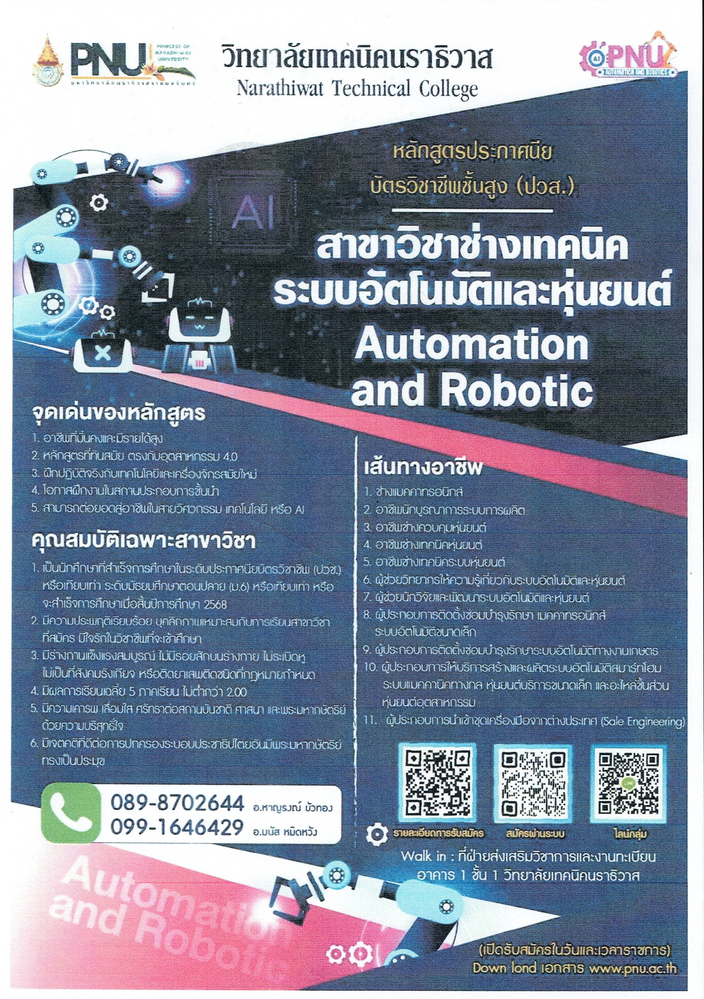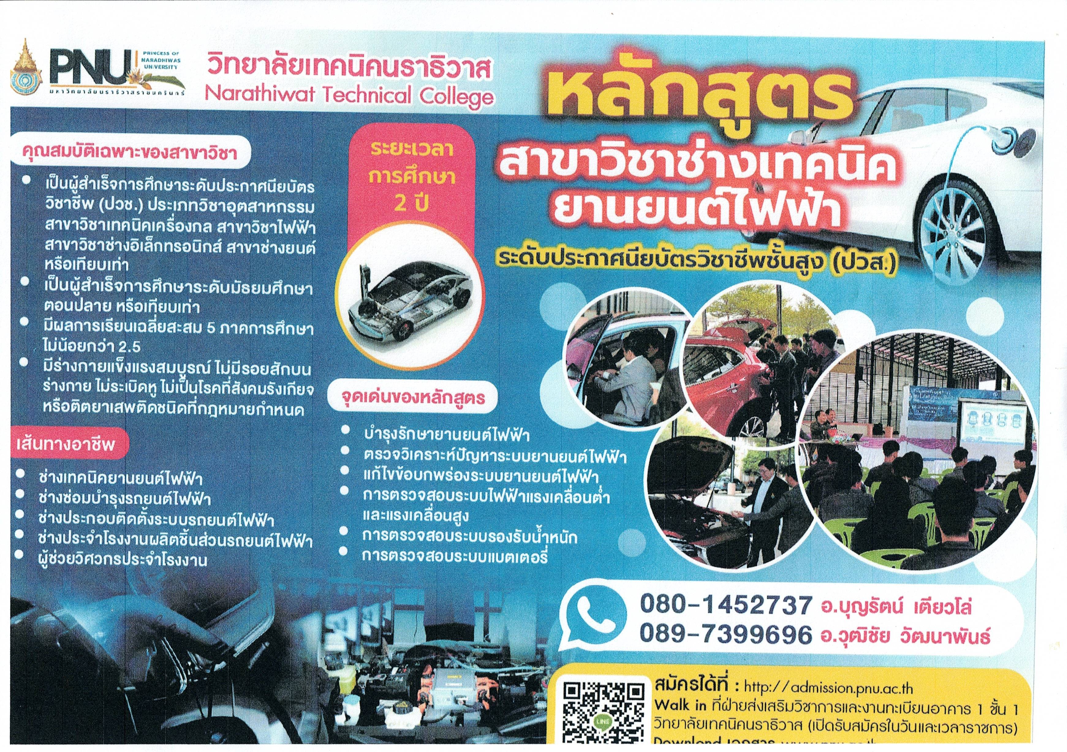 วิทยาลัยเทคนิคนราธิวาส ฝากข่าวประชาสัมพันธ์ข้อมูลการรับสมัครและการศึกษาต่อของวิทยาลัยฯ ให้แก่เยาวชนและประชาชนทราบ