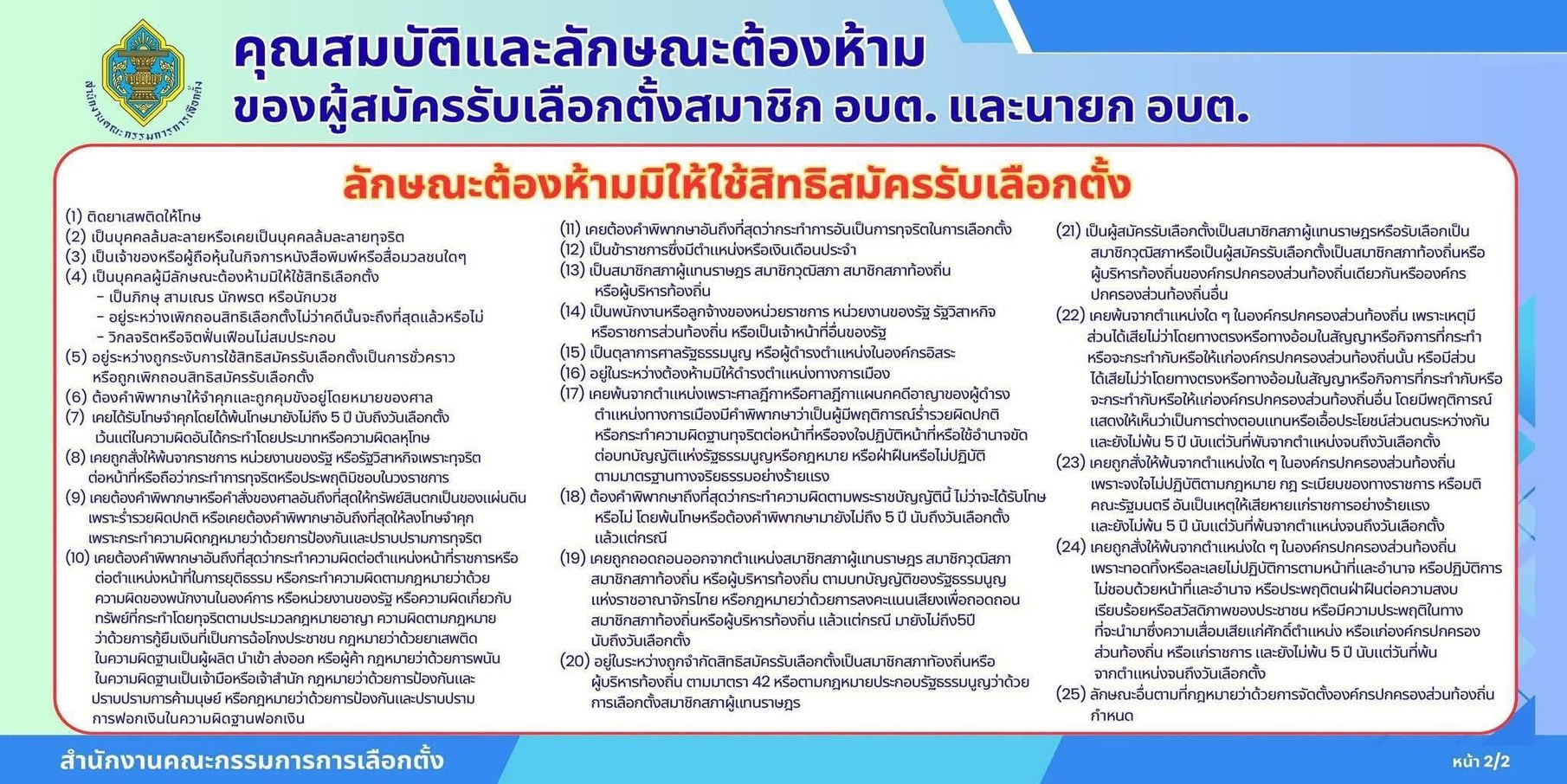 ลักษณะต้องห้ามผู้สมัครรับเลือกตั้งสมาชิก อบต. และนายก อบต.
