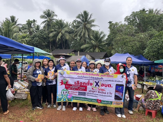 วันที่ 7 มกราคม 2569 นางสาวอุบลทิพย์ อินทันแก้ว ปลัดองค์การบริหารส่วนตำบลพร่อน ปฏิบัติหน้าที่นายก อบต.พร่อน พร้อมด้วยพนักงานส่วนตำบลพนักงานจ้างและลูกจ้าง ร่วมรณรงค์ประชาสัมพันธ์เชิญชวนประชาชนออกมาใช้สิทธิเลือกตั้งในวันอาทิตย์ที่ 11 มกราคม 2569 ในพื้นที่ตำบลพร่อน ณ ตลาดนัดบ้านโคกยาง หมู่ที่ 5 ตำบลพร่อน อำเภอตากใบ จังหวัดนราธิวาส