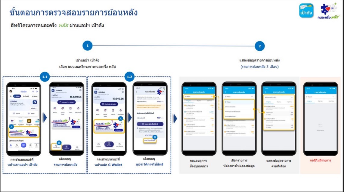 ️การตรวจสอบรายการย้อนหลัง สิทธิโครงการคนละครึ่ง พลัส ผ่านแอปฯ เป๋าตัง