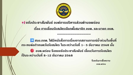 แจ้งประชาสัมพัมพันธ์ องค์การบริหารส่วนตำบลพร่อน เรื่อง การเลื่อนรับสมัครเลือกตั้งสมาชิก อบต. และนายก อบต.