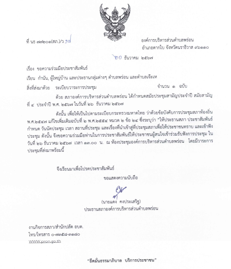 - ช่องทางสื่อสารและกิจกรรมพนักงานสัมพันธ์ อบต.พร่อน