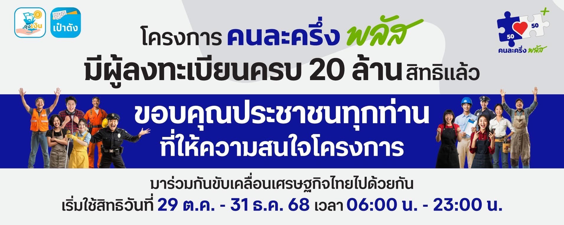 ▶️เข้าร่วมโครงการคนละครึ่งพลัส (ไม่ต้องลงทะเบียนใหม่)